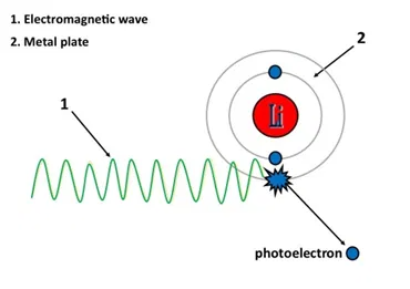 Einstein based his theory of the Photoelectric Effect as an incident electromagnetic energy being absorbed as a corpuscle of energy ‘hν’ by the atoms in the metal plate.