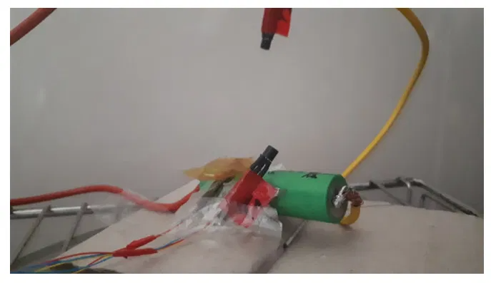 In this experiment the Sony 18650 battery was used. There was no voltage or current applied to the battery. The battery temperature TA is elevated by 0.2 C compared to the ambient temperature T2 at the start of data collection. This is due to applying thermal heat to the battery before connecting to the circuit and data collection. The battery was connected to the circuit and the voltage and temperature data was recorded with respect to time.