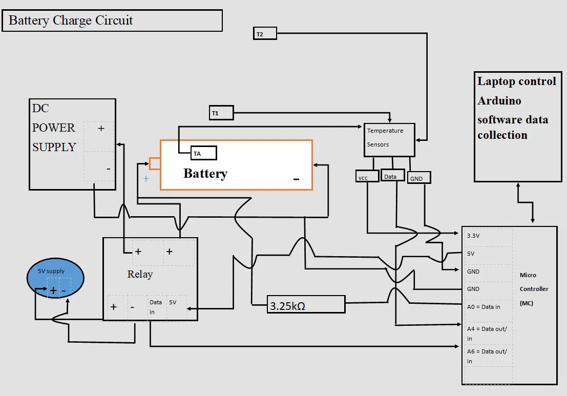 In this experiment the Panasonic 18650 battery was used, there was no voltage or current applied to the battery. The battery was connected to the circuit and the voltage and temperature data was recorded with respect to time.