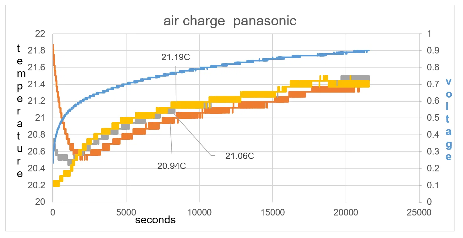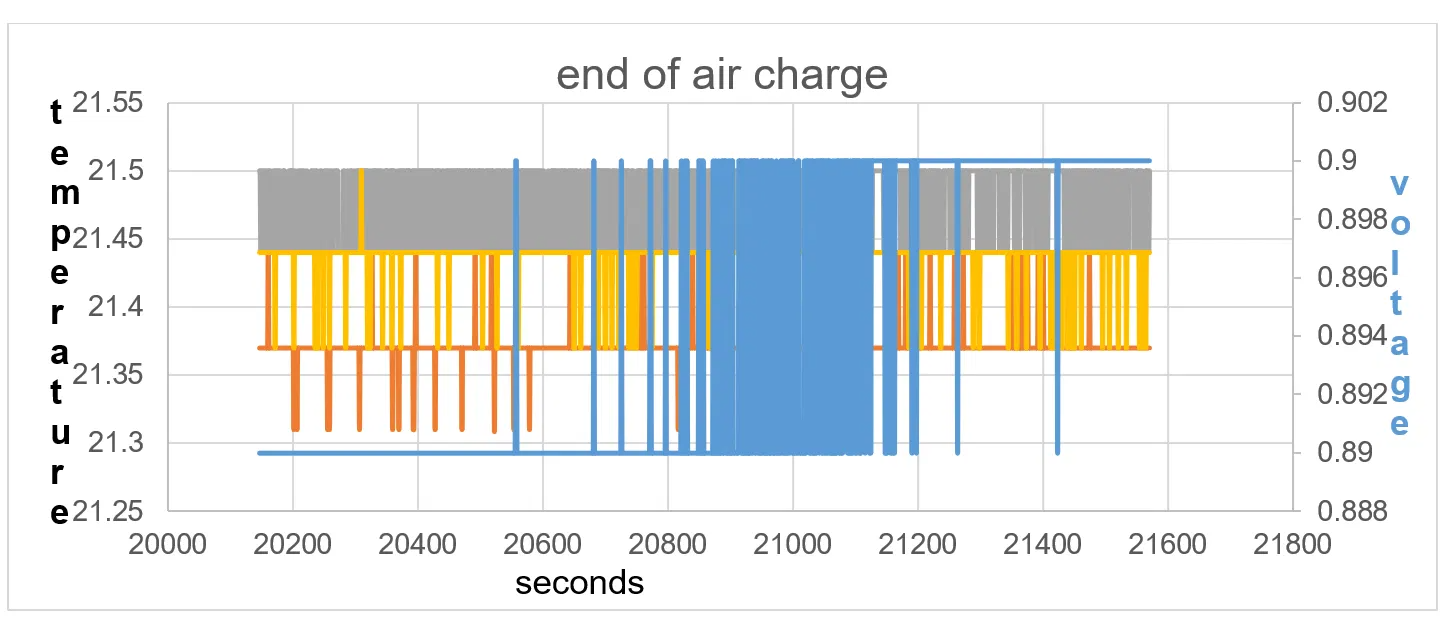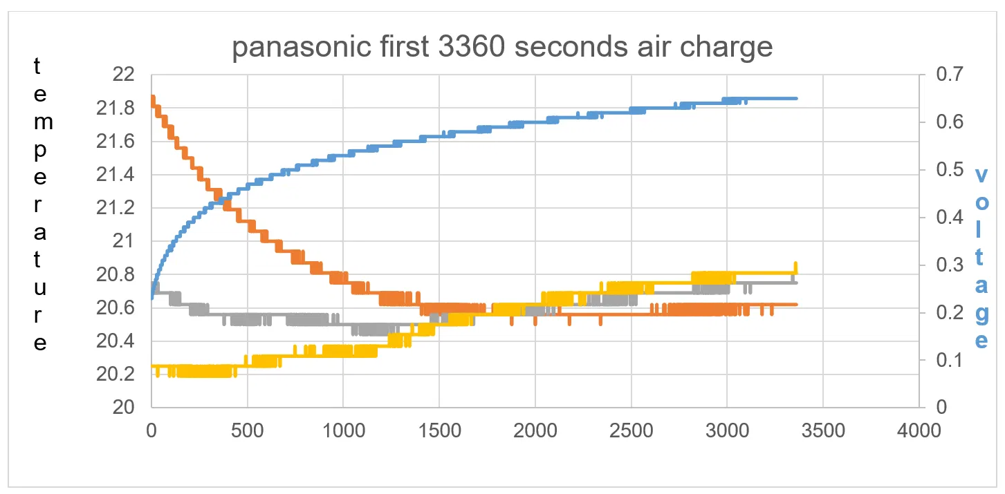 Figure 38: Overall data of time charge. TA drops in temperature by 1.4C in the first 2542 seconds and raises to 0.63V.